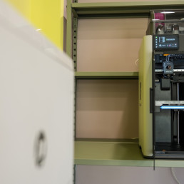 Area dedicata alla prototipazione e al making, attrezzato con Stampante 3D, Taglio Laser, Plotter, Microprocessori e tanto altro.