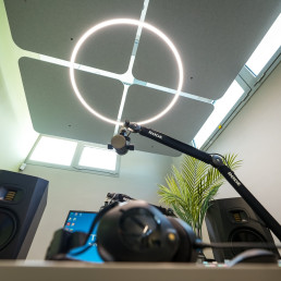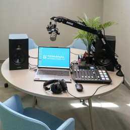 Studio podcast e videocast professionale: sala registrazione e editing per realizzare interviste, puntate e produzioni digitali con tecnologie d'avanguardia.