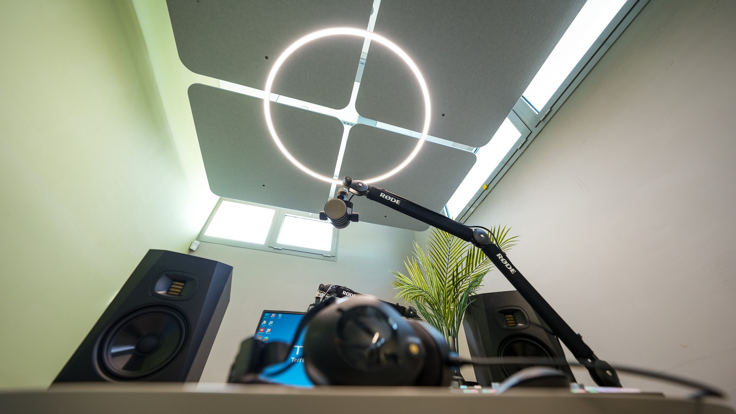 Abbiamo scelto lo standard dell'industria per garantirti una fedeltà sonora cristallina. Il nostro cuore tecnologico è basato sul RODE Duo Bundle, configurato per sessioni a due voci con il massimo del comfort e della qualità. - Console RØDECaster Duo: Gestione audio intelligente e processing in tempo reale. - Microfoni PodMic: Calore e dettaglio tipico del broadcast radiofonico. - Cuffie NTH-100: Monitoraggio neutro e comfort estremo per lunghe sessioni. - Monitor Adam Audio T7V: Per un mixaggio perfetto, grazie a monitor da studio professionali. - Pc e notebook per l'editing e lo  streaming